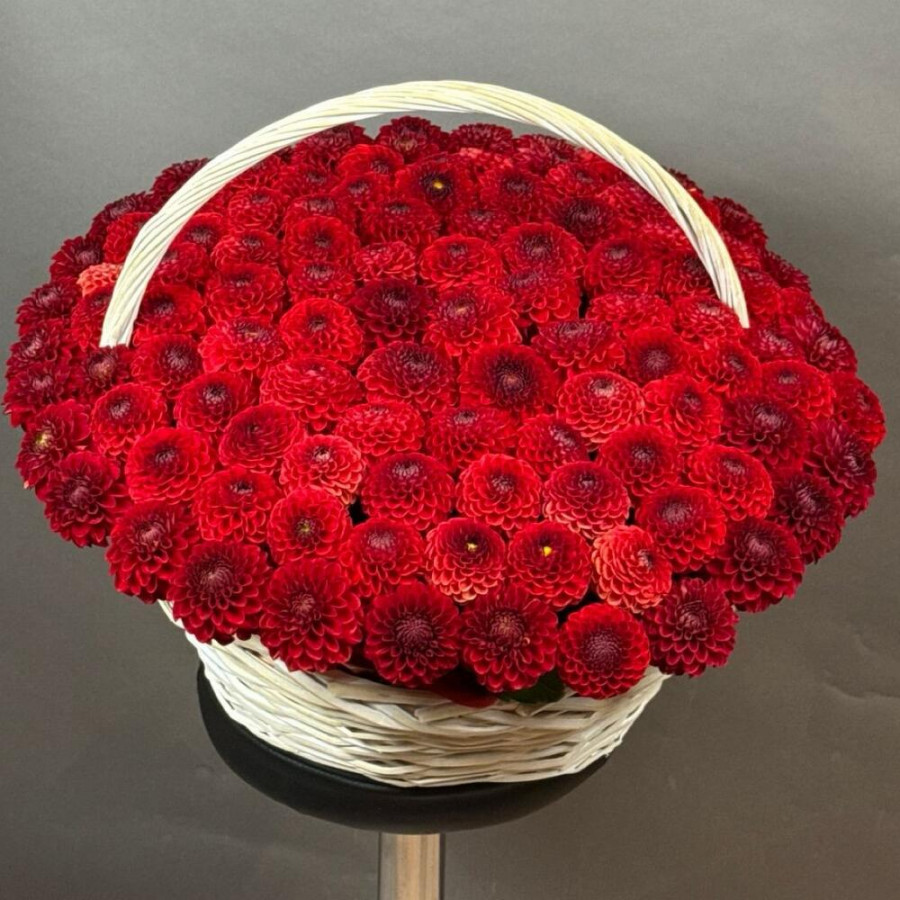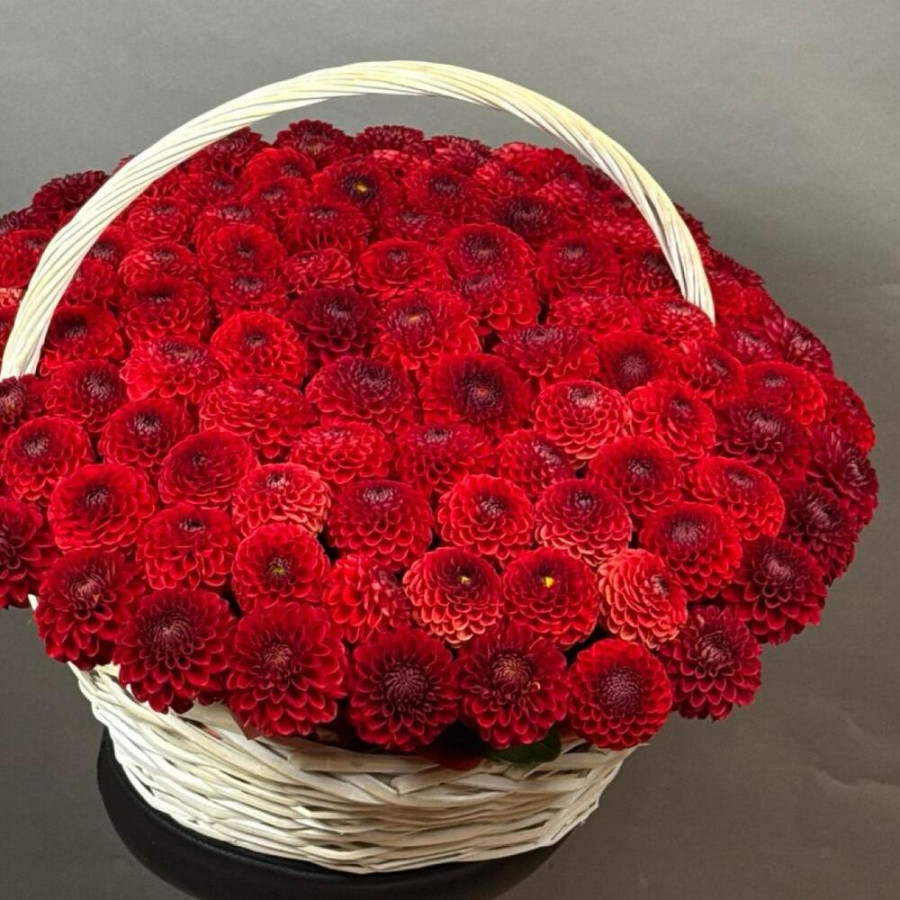Композиция из 101 красной георгины в корзине в Лыткарино